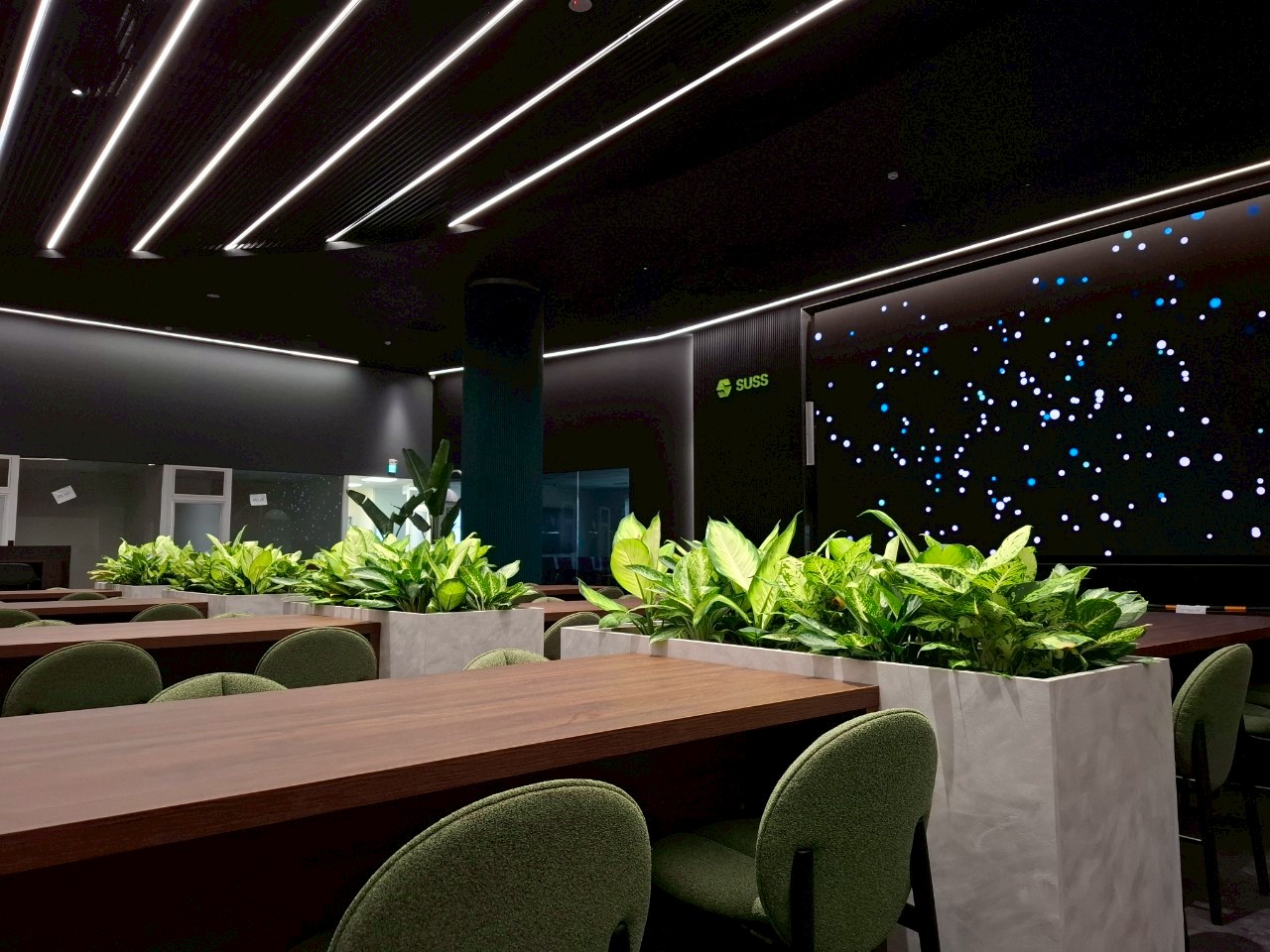 作品介紹 Project Portfolio 將自然元素引入建築內部,營造健康、舒適且具科技質感的工作環境。植栽配置選用耐陰、低維護之植物,結合自動化灌溉與智慧管理系統,確保景觀品質與營運效率並存。 室內綠化不僅提供員工放鬆身心、提升專注力的自然場域,並使室內空間兼具功能性與自然感受,創造穩定且宜人的工作環境。