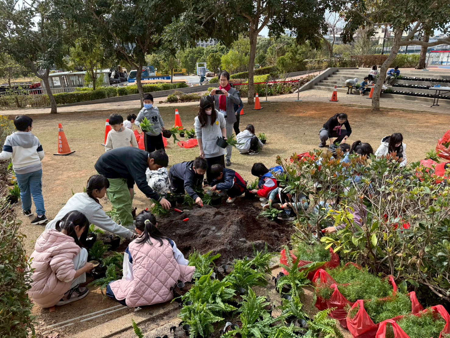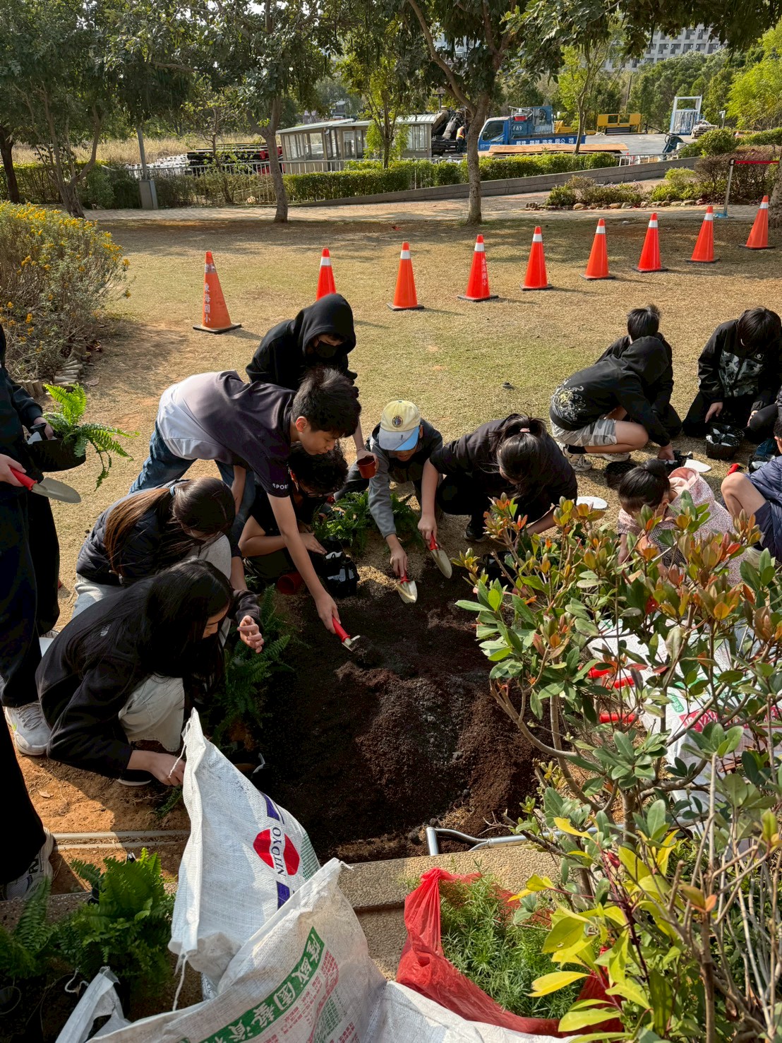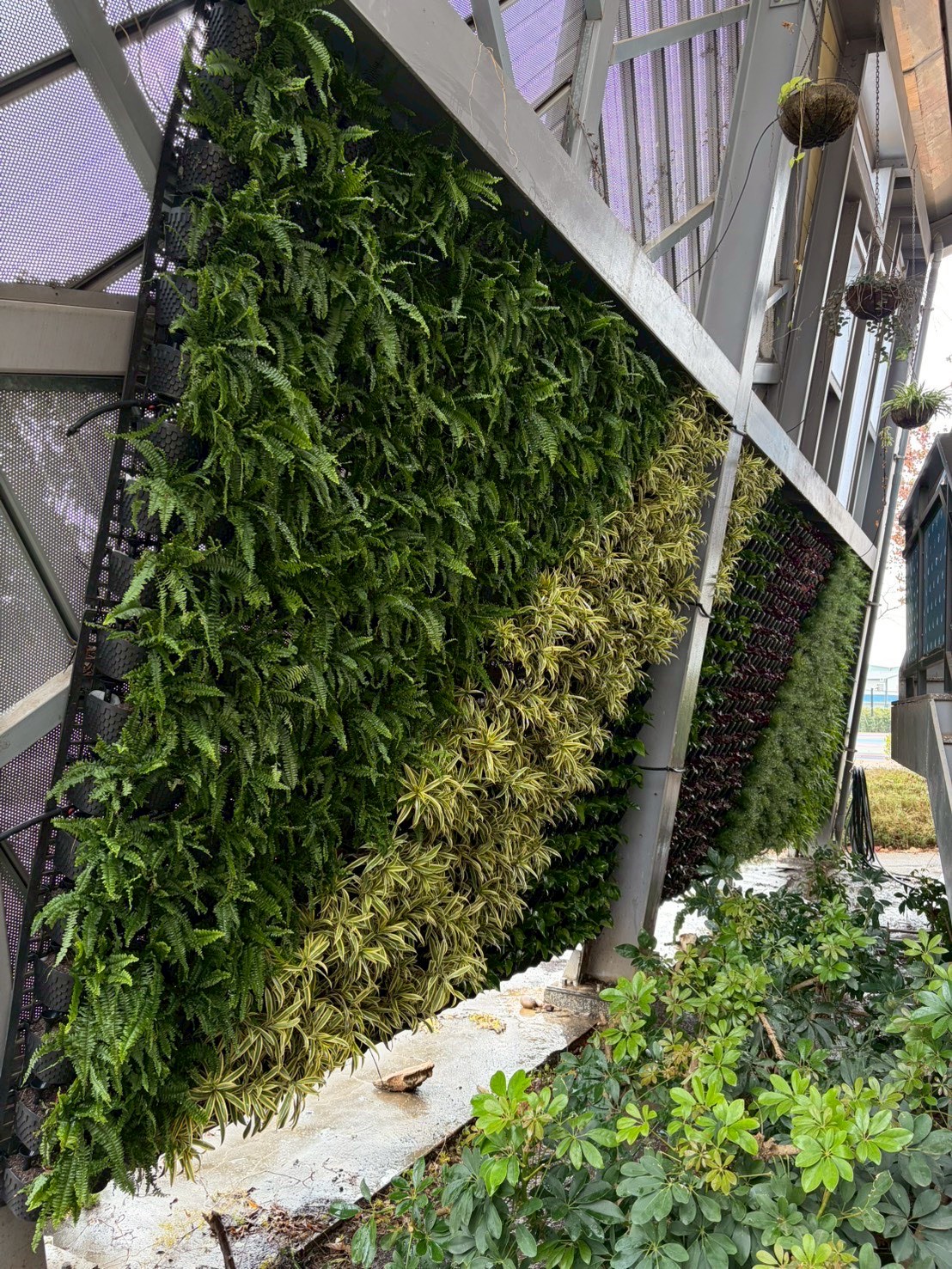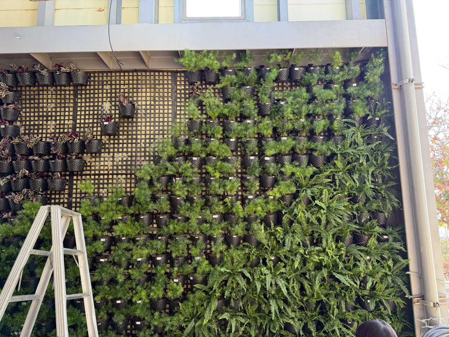 作品介紹 Project Portfolio 本案植生牆系統更新採用「空氣斷根盆」作為植栽容器,透過良好的通氣與排水設計,促進根系健康生長,提升植栽存活率並降低維護難度。同時結合校園植栽認養機制,讓學生及班級共同參與植栽照護與觀察,使植生牆成為兼具環境綠化與生態教育功能的校園學習場域。